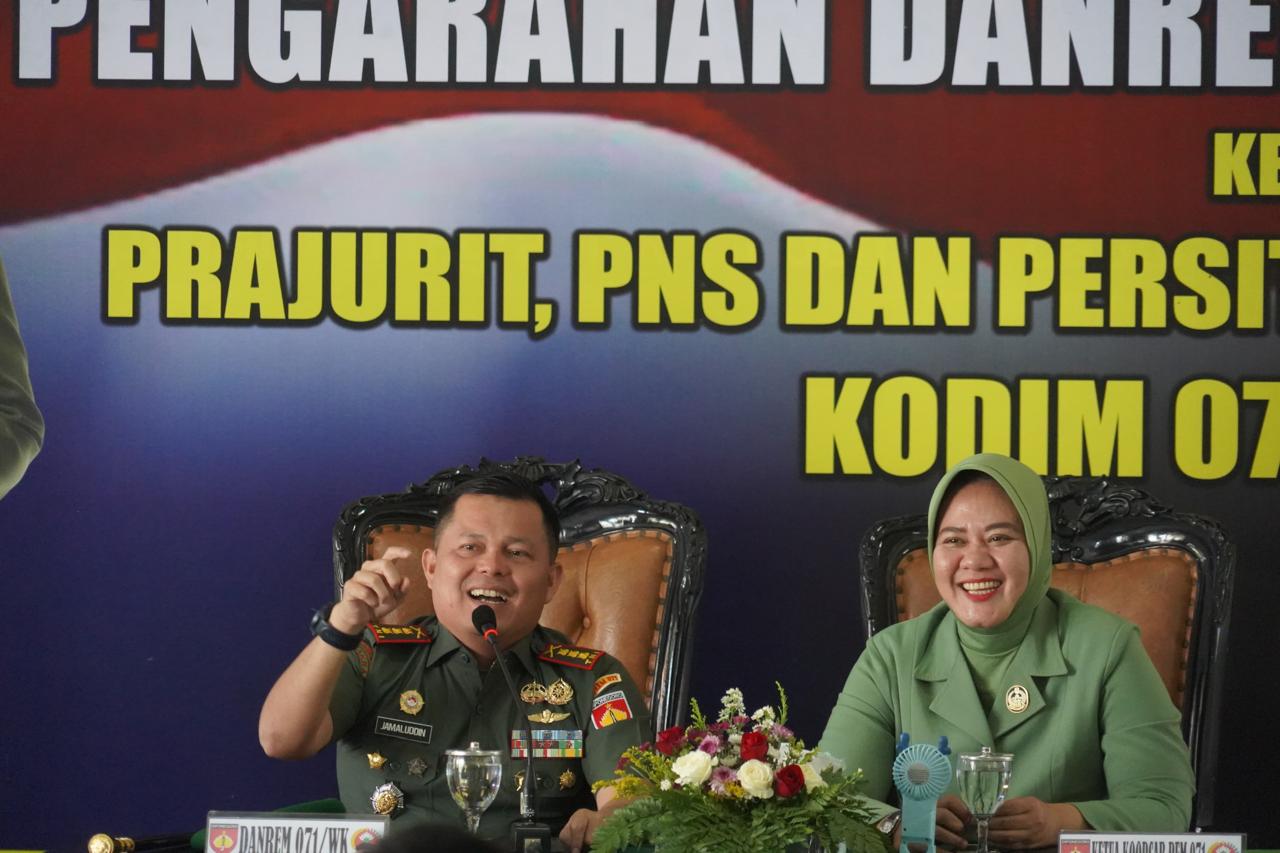 Banyumas - Kolonel Inf Jamaluddin, S.I.P, yang secara resmi sejak 2 Mei 2024 menjabat sebagai Komandan Korem 071/Wijyakusuma, dengan didampingi oleh Ketua persit Kartika Chandra Kirana Koorcab Rem 071 PD IV/Dip Ny. Dali Asmita Jamaluddin, Kasi Intelrem 071/Wk Mayor Inf Fendi Puthut beserta istri, Kasi Logrem 071/Wk Letkol Inf Amir Ma’ruf beserta istri, Kasi Terrem 071/Wk Letkol Inf Darul Quthni beserta Istri, Kasi Renrem 071/Wk Letkol Cba (K) Roro Sri Harjani, Pasiops Rem 071/Wk Mayor Cpl Riza Himawan, melaksanakan rangkaian kunjungan kerja perdananya ke satuan jajarannya yang berada di wilayah pantura, di antaranya Kodim 0736/Batang, Kodim 0710/Pekalongan, Kodim 0713/Brebes dan Kodim 0712/Tegal, Kamis 16/5/2024.